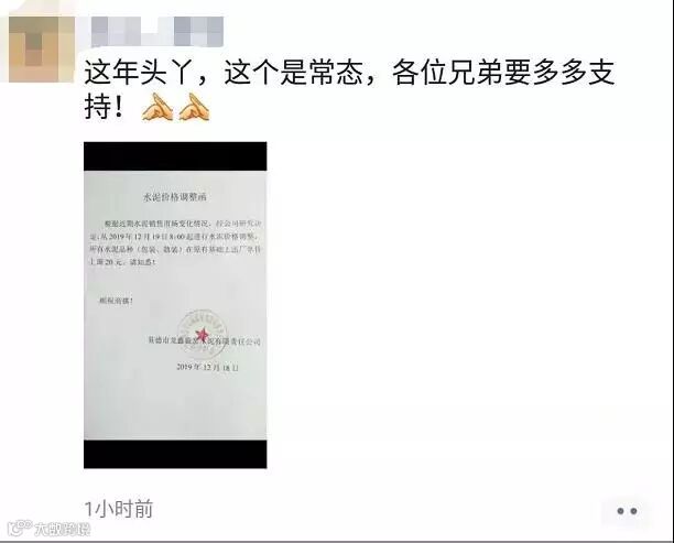 佛山金三水泥通知,根据当前的市场行情结合公司的产销形势,决定自2019年12月19日零时起对金三厂全线品牌水泥在原单价基础上上调20元/吨。