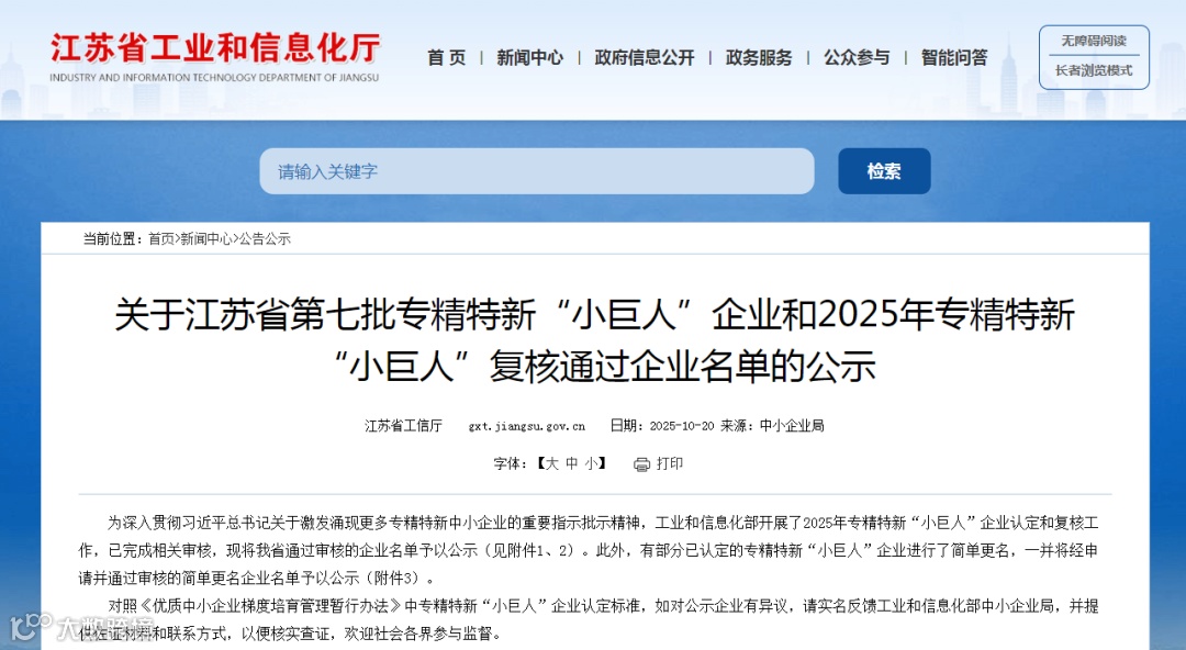 喜讯传来!近日,江苏省工业和信息化厅正式公布了2025年第七批国家级专精特新“小巨人”企业名单,张家港市华昌新材料科技有限公司凭借在新材料与精细化工领域的持续创新与硬核实力,光荣登榜!