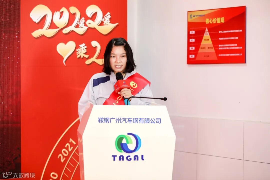 (雷爱娣荣获2021年度最佳员工并代表分享获奖感言。)