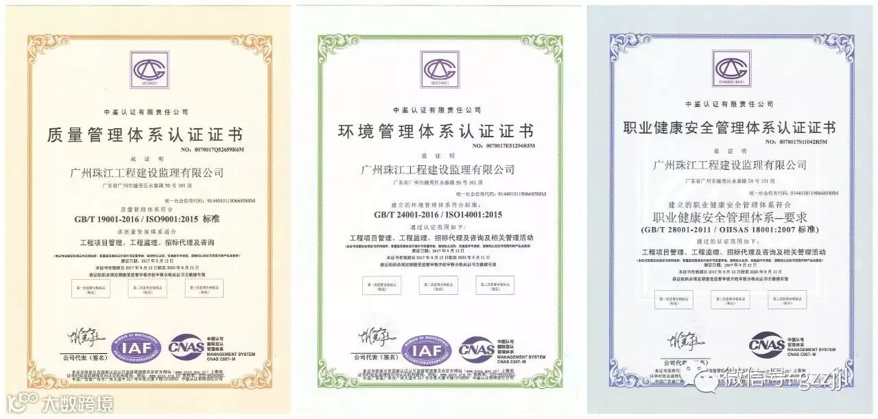 2017年9月4日至6日,中鉴认证有限责任公司专家组对我司进行转版三标(ISO9001:2015、ISO 14001:2015、GB/T 28001-2011)认证审核。专家组分别对我司领导层、工程技术部、招标代理部、发展经营部、行政人事部、造价咨询部进行了审查,并对保利鱼珠AP0518004地块项目、钟村污水处理厂改扩建二期工程、广州金控总部大楼工程及(珠实集团)岭南苑二期项目的管理运行情况进行了实体抽查。