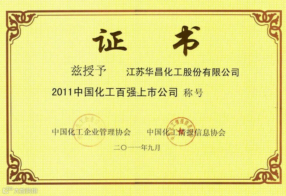 2011年9月21日,公司首次被中国化工企业管理等协会授予“2011中国化工百强上市公司”荣誉称号。