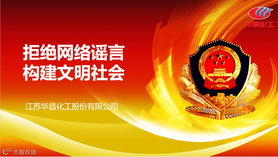 为进一步增强员工网络安全意识,拒绝网络谣言,构建文明社会,江苏华昌化工股份有限公司认真贯彻公安部、省厅、市局关于公安机关打击整治网络谣言专项行动的指示精神,加大宣传力度,开展“拒绝网络谣言,构建文明社会”专题培训。要求全体华昌人始终保持对网络谣言的警惕性,坚持做到不信谣不传谣,文明社交、文明上网从我做起。