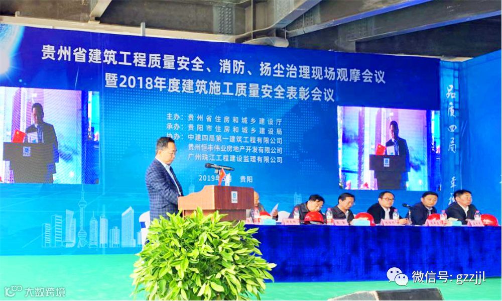 5月10日,由贵州省住房和城乡建设厅主办的“贵州省建筑工程质量安全、消防、扬尘治理现场观摩会议暨2018年度建筑施工质量安全表彰会议”在珠江监理恒丰·贵阳中心项目召开,贵州省住房和城乡建设厅、贵州省应急管理厅、贵阳市住房和城乡建设局等领导以及贵州省建筑业协会会员单位、2018年度贵州省建筑工程优质质量和安全文明施工样板项目获奖单位、珠江监理恒丰·贵阳中心项目各参建方代表参加会议。