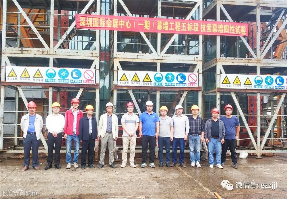为进一步确定拉索幕墙是否能够满足设计及规范要求,5月9日,珠江监理深圳国际会展中心项目拉索幕墙四性试验在广东省建筑科学研究院研发中心顺利完成。珠江监理刘昭民副总经理、温育希总监理工程师等联同建设单位、设计单位、施工单位主要负责人参与了本次试验的监督见证。