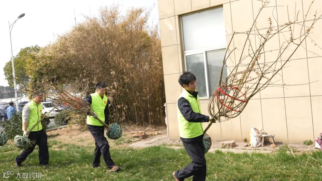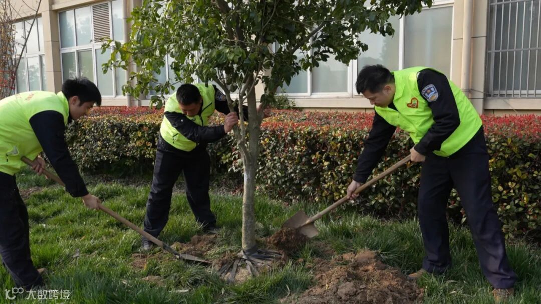 大家齐动手,挥铲、扶苗、填土、浇水,共同用绿色点缀春天。一番挥汗,一株株树苗迎风而立,刚栽下的树苗耷拉着梢头略显柔弱,只待时日,必将郁郁葱葱,一片蔚为。