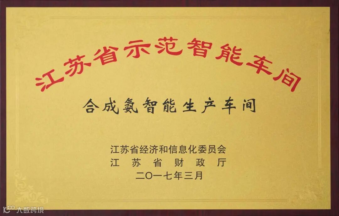 2017年3月,公司合成氨车间被江苏省经济和信息化委员会、江苏省财政厅评为“江苏省示范智能车间”(合成氨智能生产车间),肯定了公司在智能制造领域所取得的显著成就。
