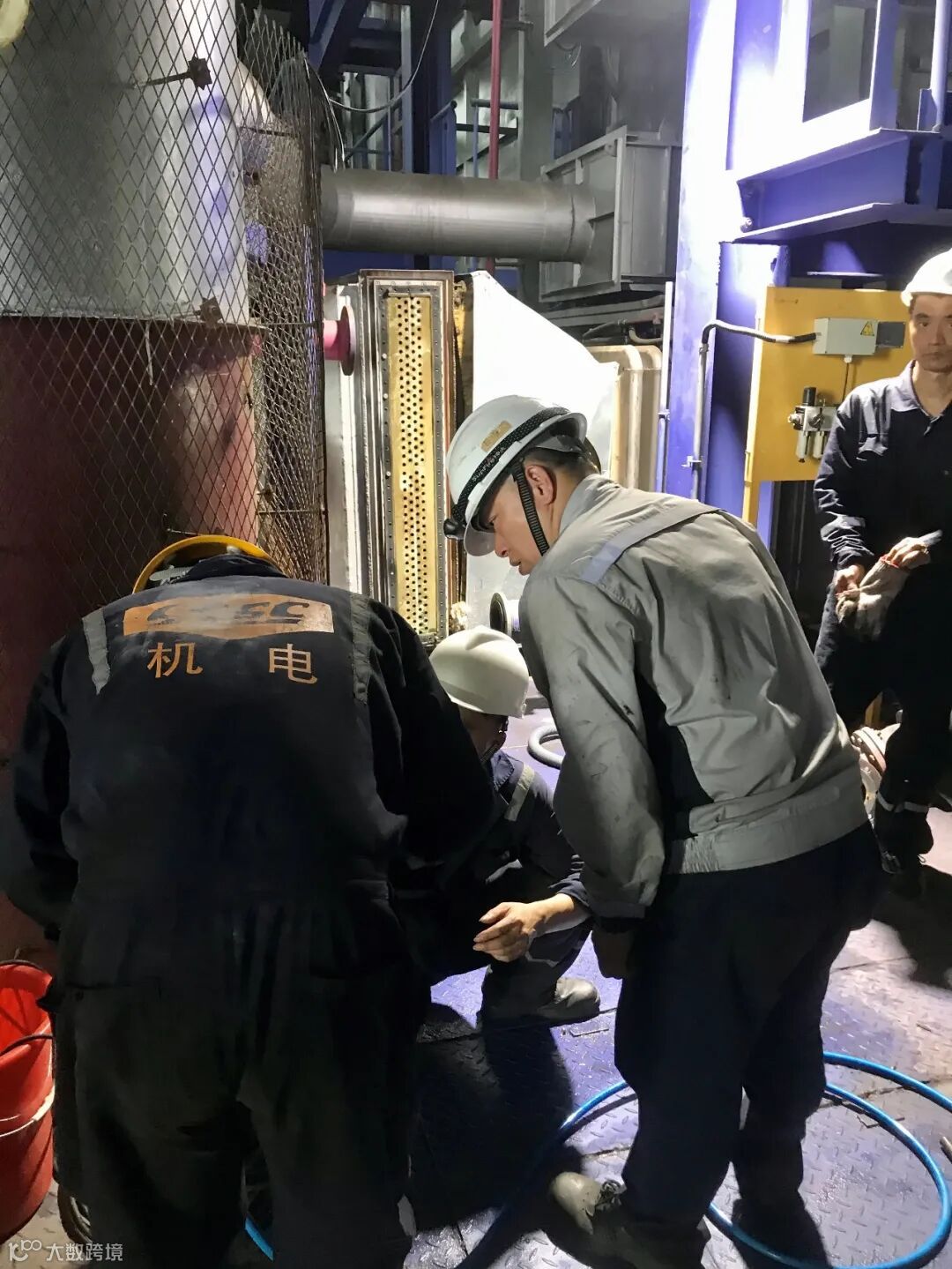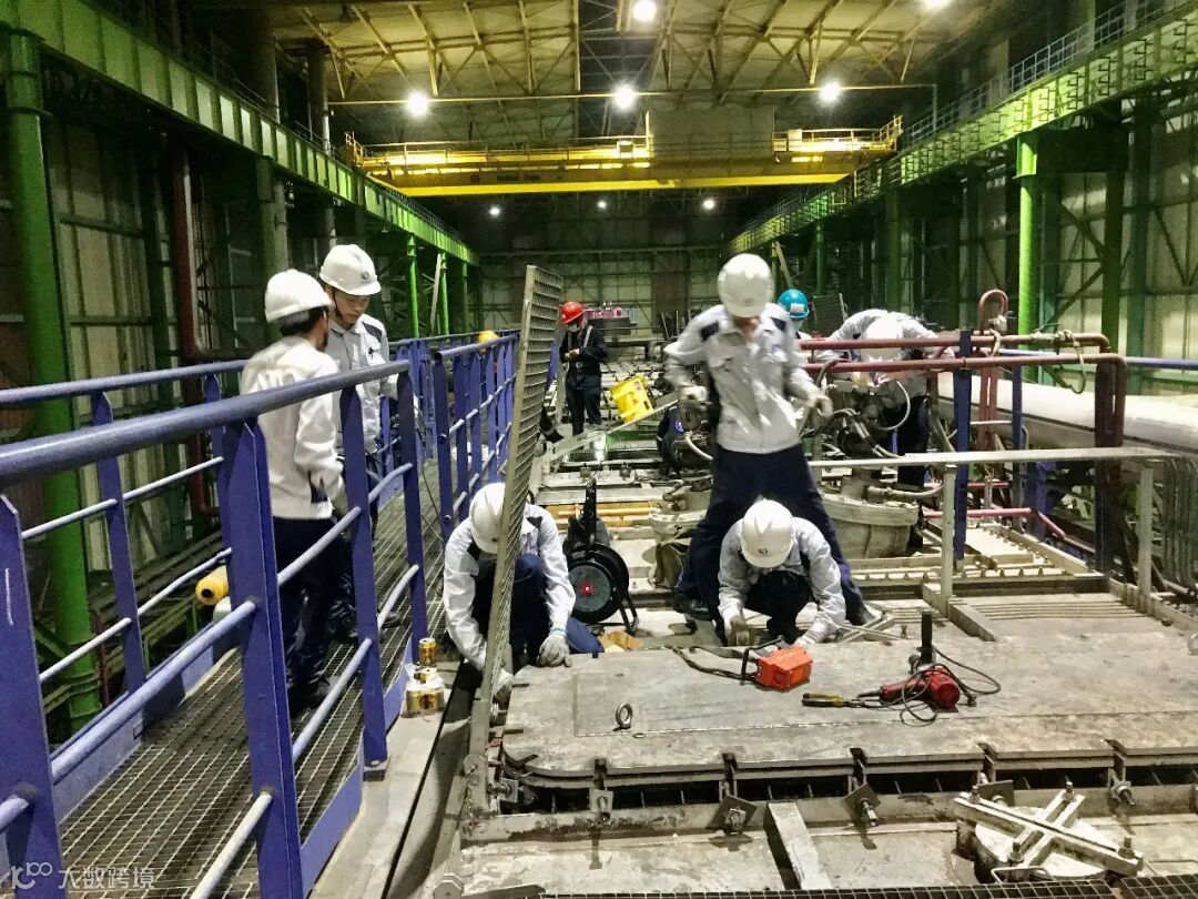 分工明确、配合默契,走进生产现场,每位参加年修人员都在恪尽职守,井然有序地忙碌着。透过狭隘的小炉口,看到的是一个个高大的身板蜷缩在机械中间,尽管衣衫被汗水浸湿,工衣被油渍灰尘沾满,他们仍奋不顾身地完成检修工作。