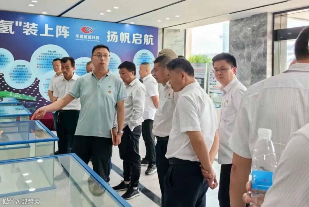 在华昌能源党支部书记高宏伟的带领下,共建支部的成员先后参观了华昌能源的展厅和氢能研发中心,详细了解华昌能源的生产经营、研发创新、市场布局等情况。