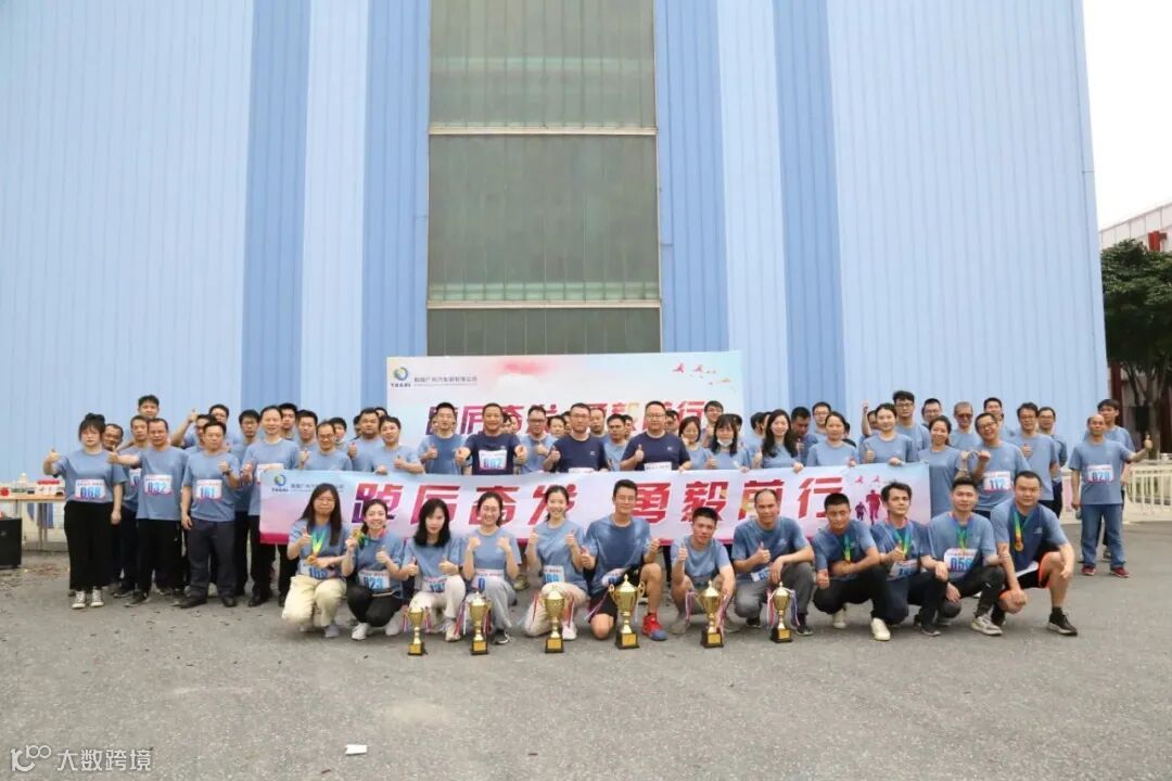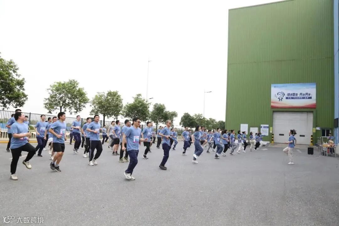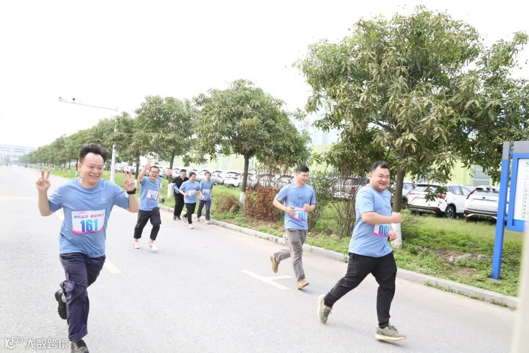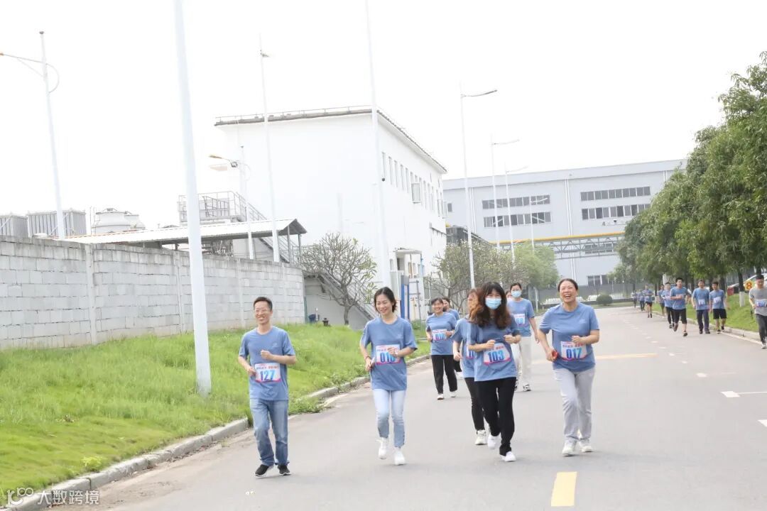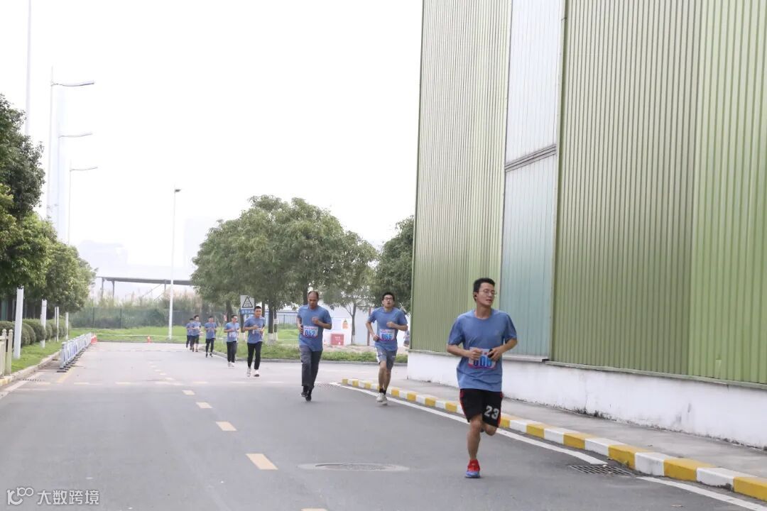 开跑场面非常壮观,领导班子领跑,以厂房2号门为起点,男生组环厂跑3圈,全程约3.5公里,女生组环厂跑2圈,全程约2.3公里,来自各部门的100多名员工在厂区道路上开跑,用奔跑传递喜悦,用奔跑一起为公司成立七周年喝彩!