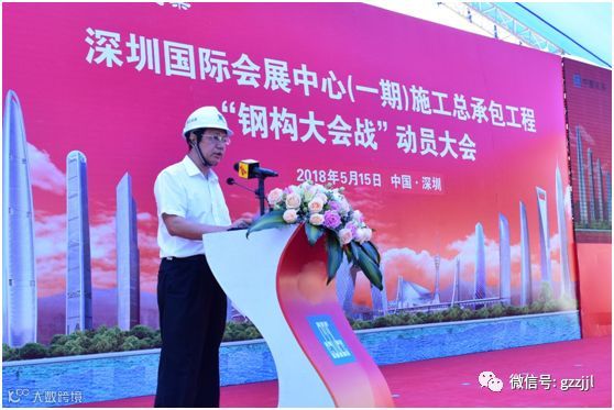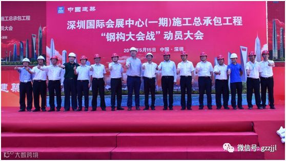 2018年5月15日,深圳国际会展中心(一期)项目举行“钢构大会战”动员大会。深圳国际会展中心建设指挥部常务副总指挥刘志达,深圳市招华国际会展发展有限公司总经理马军,中国建筑股份有限公司副总裁邵继江,广州珠江工程建设监理有限公司副总经理刘昭民等出席大会。