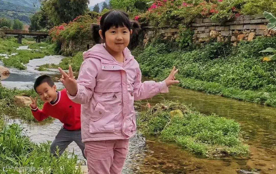 来自爸爸的祝福:愿两姐弟健康快乐,长高高。