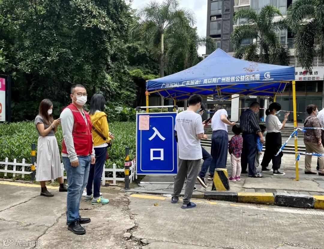 还没到检测点,就能听到志愿者维护秩序的声音——身着红马甲的志愿者们正忙着引导大家有序进行核酸检测。在苏庄社区全员核酸检测队伍中,沈天明和许多社区志愿者的身影在人群中时隐时现。