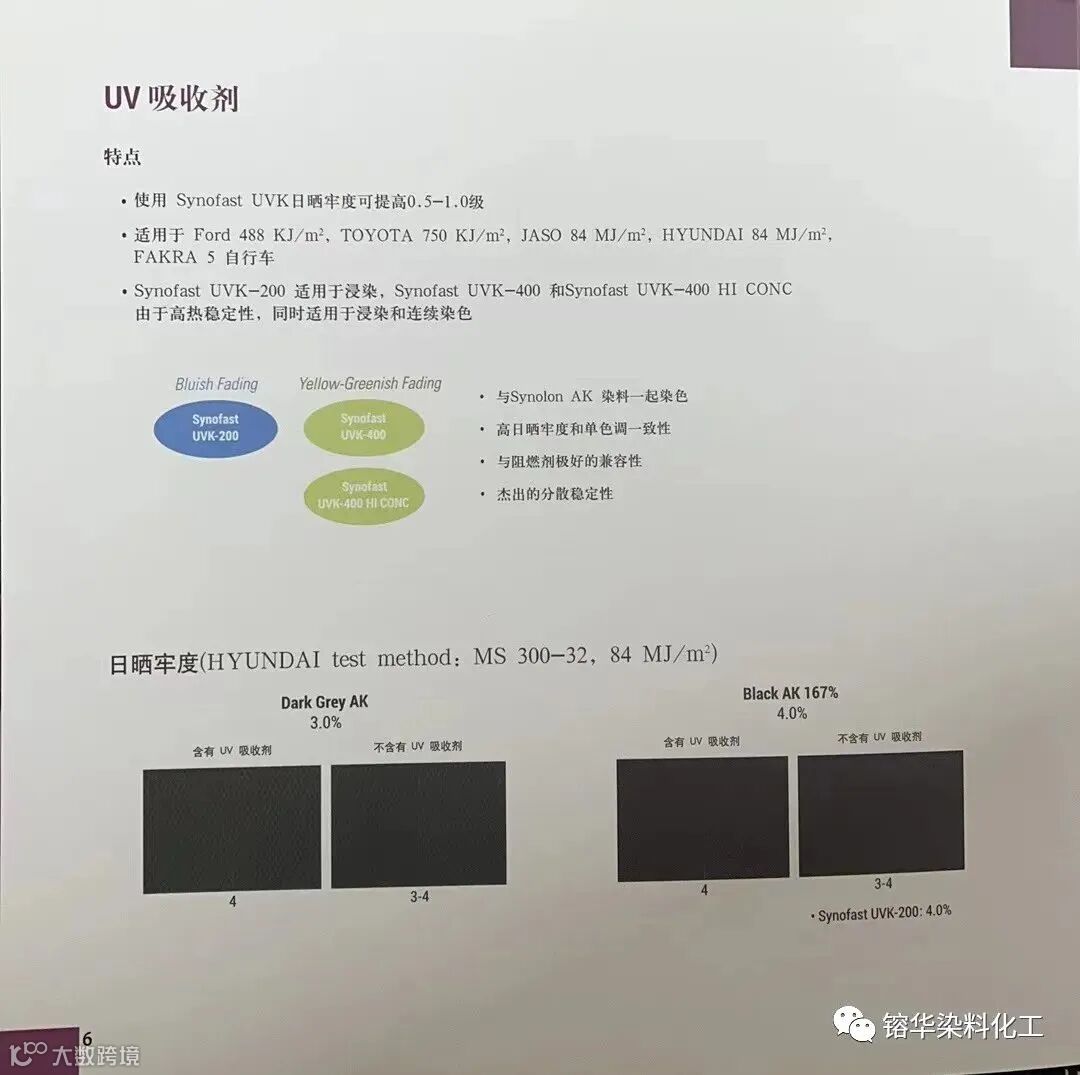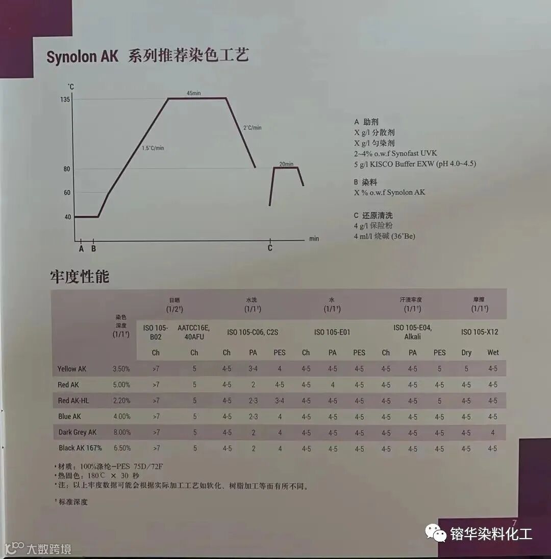 镕华染料化工Synolon Dark Grey AK 是专为汽车织物和最高日晒织物染色而开发的,能满足特高日晒牢度,该系列的分散稳定性也很优秀。
