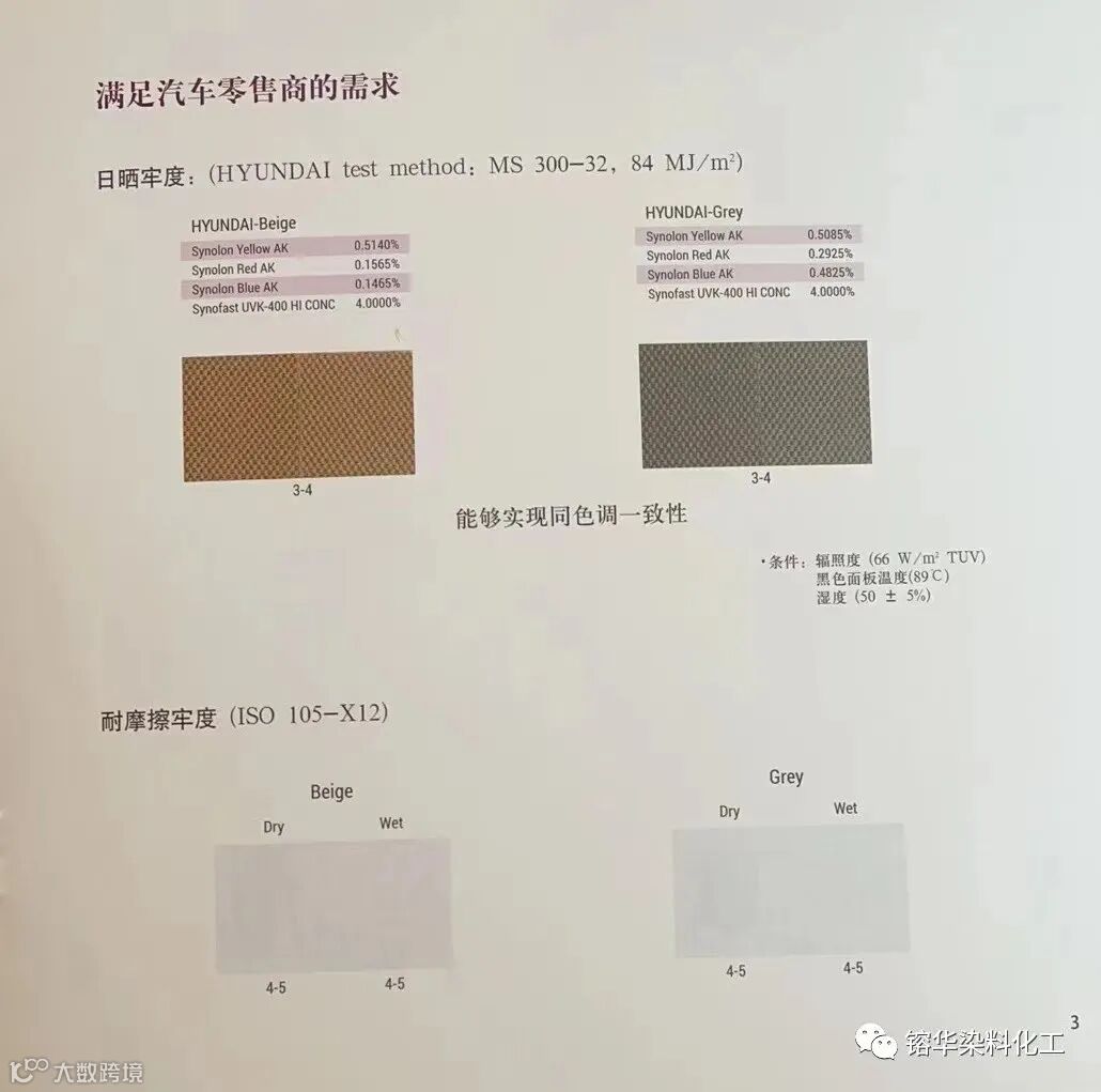 · 高日晒适合汽车需求(日晒lSO 105-B02>7 AATCC16E-40AFU 5)