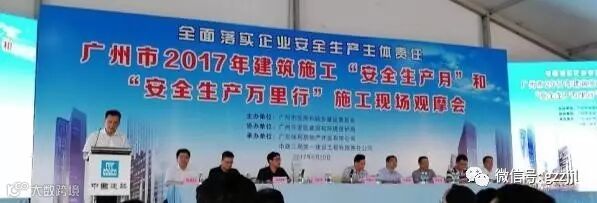 会议由市建委质安处韩国雄副处长主持,开发区建设和环境保护局代新祥副局长和广州市住房城乡建设委副巡视员廖集中、业主、施工单位领导分别发言讲话。广州市住房城乡建设委副巡视员廖集中指出,安全是建设工程的生命线,是企业的生命线,需要建设各方共同坚守。他强调,安全生产工作任重道远,需广大从业人员携手努力,共织我市建设行业科学发展的“安全网”。鉴此他提出5点工作要求,一是强化“四个意识”,坚守安全红线;二是加强组织领导,注重活动实效;三是注重安全教育宣传,建立长效机制;四是夯实安全生产基础,大力推进绿色施工;五是加强安全监管,全面落实责任。