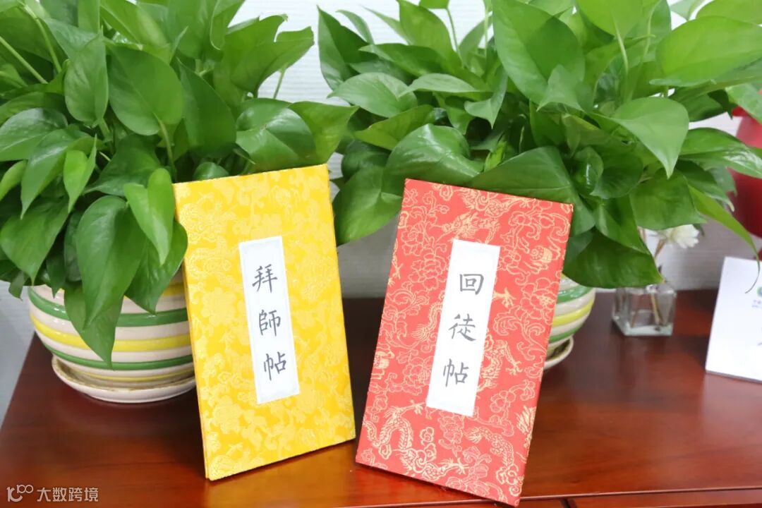 在拜师仪式上,徒弟们整理好衣冠,给师傅们敬上了一倍饱含敬意的拜师茶,一句“师父,请喝茶!”代表着一段师徒情谊的结成。徒弟向师父献花、行礼、敬茶、宣读《拜师贴》,师父向徒弟宣读《回徒贴》。