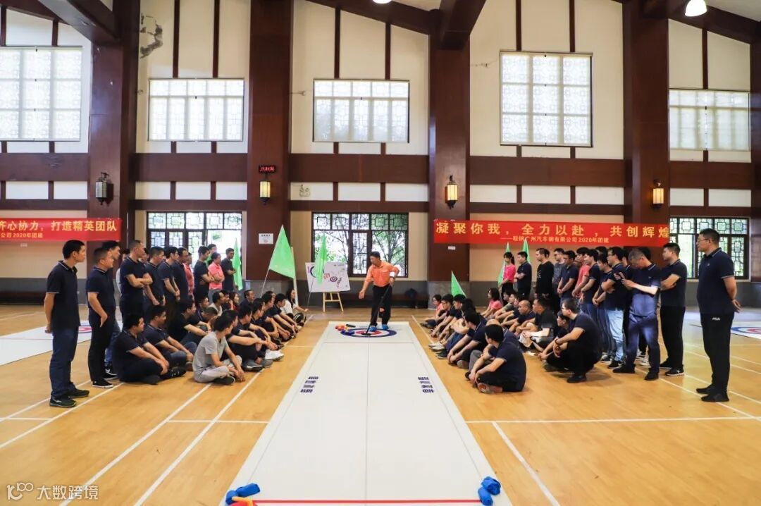 本次拓展的项目是“旱地冰壶”,在运动中没有身体对抗,安全系数高。通过冰壶的撞击对抗来进行比赛,更多的是对于相关技术、团队配合以及战略战术的考验。