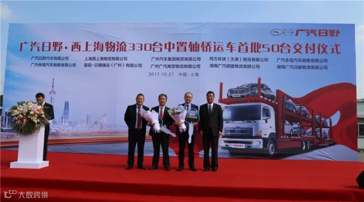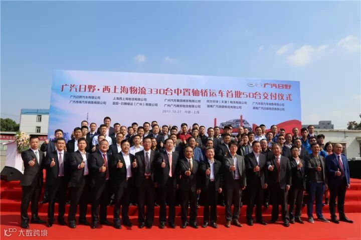 10月27日,“广汽日野-西上海物流330台中置轴轿运车首批50台交付仪式”在上海西上海物流有限公司内隆重举行。来自上海西上海物流有限公司、广州汽车集团商贸有限公司、广汽日野汽车有限公司以及上海汽车物流行业的重点企业、行业媒体等近百人齐聚上海,出席此次活动,共同见证了这盛大的时刻。