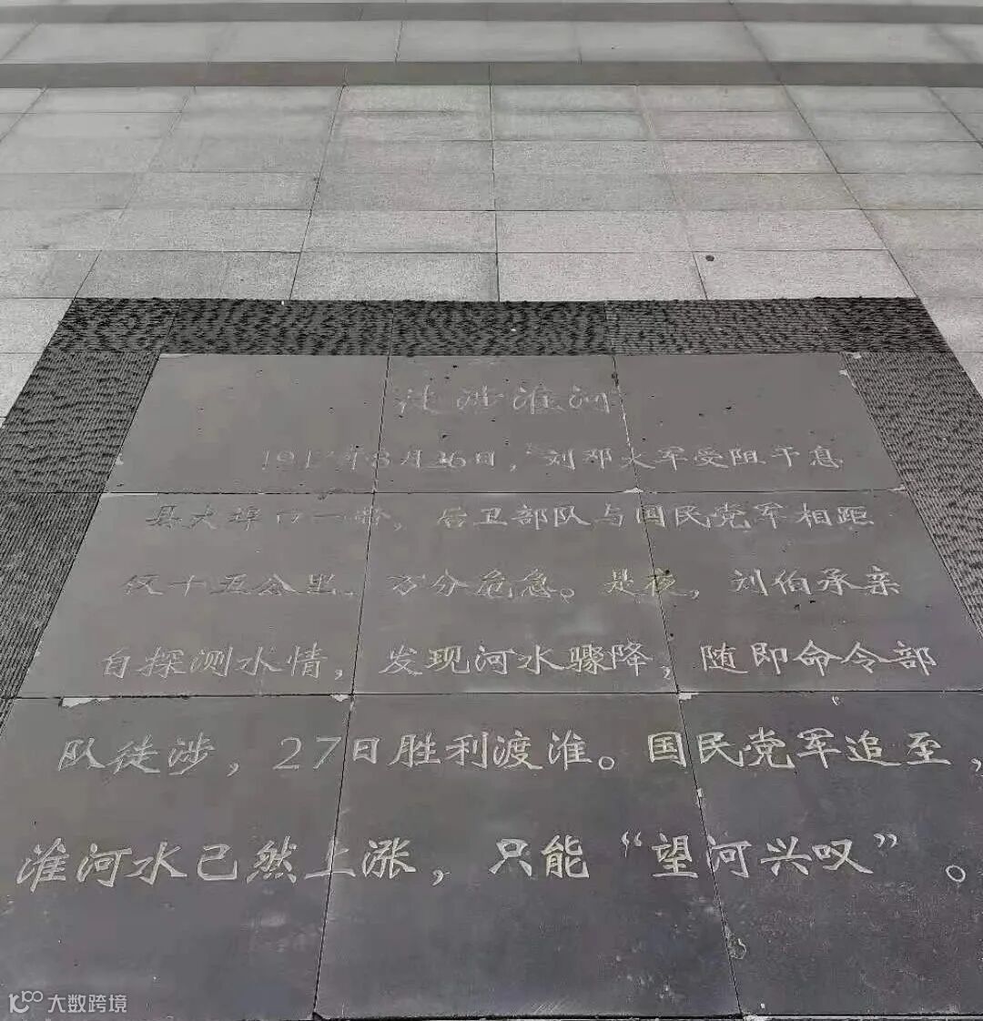 1947年8月27日,刘邓大军冲破敌人的重重阻拦,渡过淮河天险进入大别山区,胜利完成了千里跃进大别山的战略任务。为纪念刘邓大军渡过淮河挺进大别山,铭记革命前辈的丰功伟绩,缅怀先烈勇往直前的革命精神,再现刘邓大军千里跃进大别山波澜壮阔的历程,河南省息县人民政府在刘邓大军渡淮旧址修建了刘邓大军渡淮纪念馆、纪念碑、广场和革命烈士陵园。