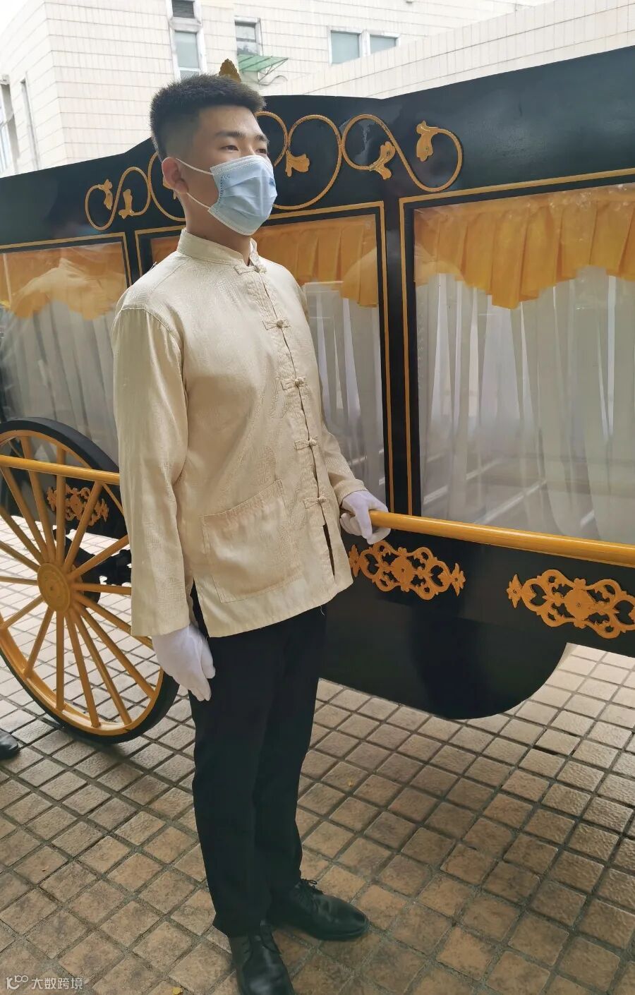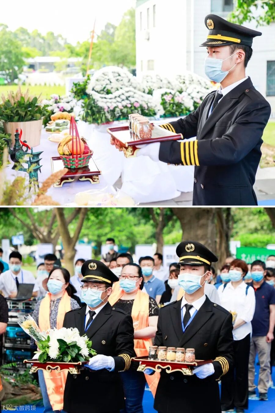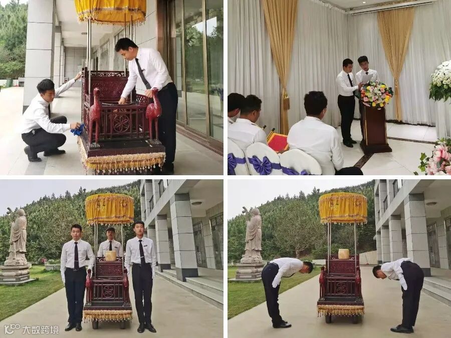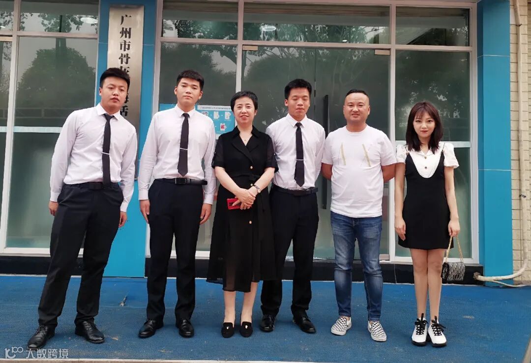 ▲黑龙江省民政职业技术学校校长马荣(左三)与圆满服务助理总裁白鹤(右二)、实习学生代表合影