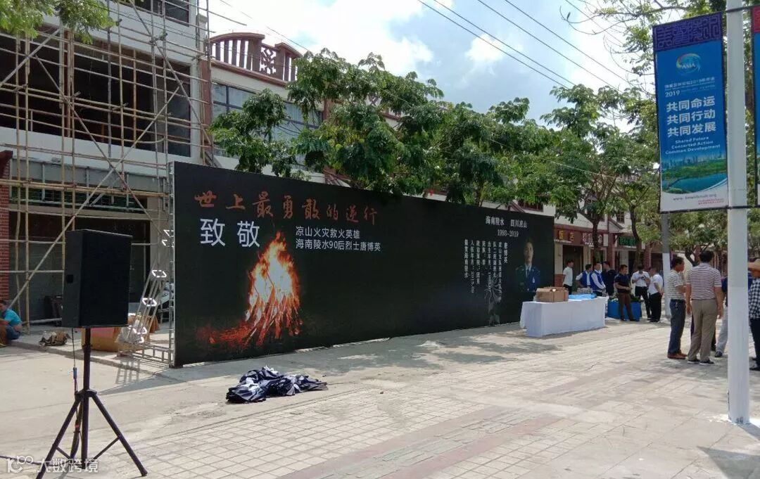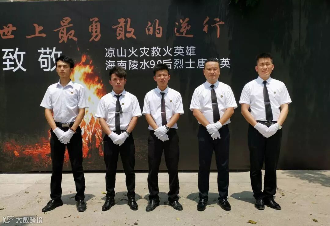 4月3日下午4点多,广东圆满服务接到海南陵水方面通知,4月5日需要为四川凉山救火英雄唐博英在老家海南陵水黎族自治县本号镇举办一场追思会,需要专业的殡仪服务团队策划执行。