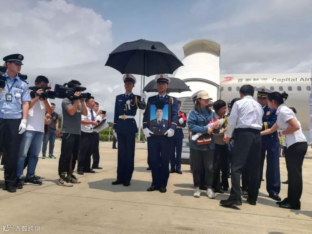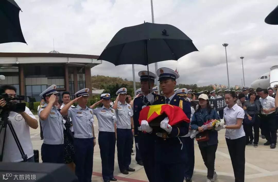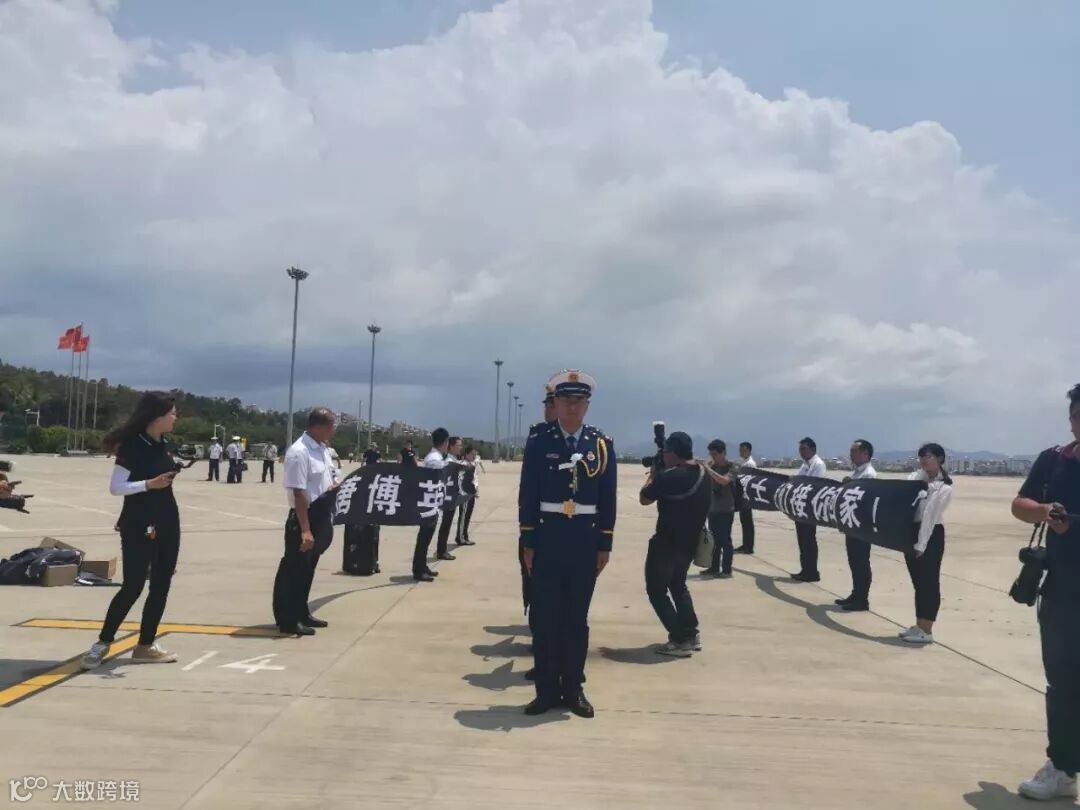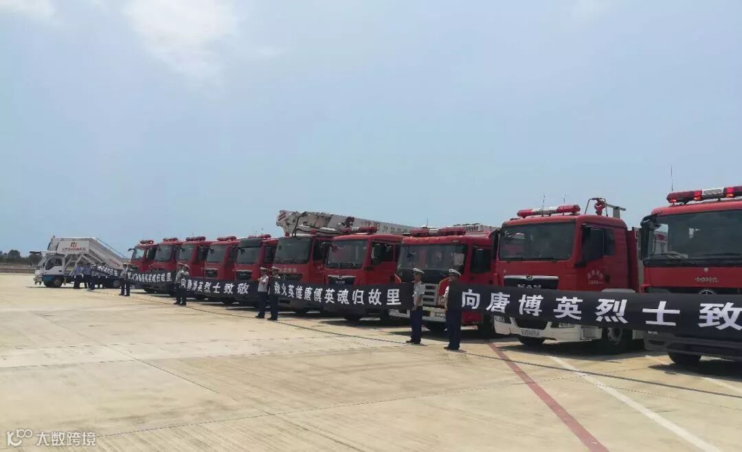 4月5日13点15分,救火英雄博英,终于回家了,载着唐博英烈士骨灰的专机抵达三亚凤凰国际机场,在亲属和圆满服务工作人员的陪伴下安然返回陵水黎族自治县本号镇。