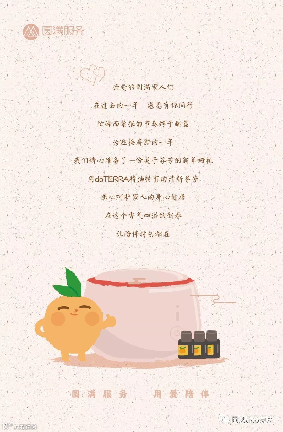 导读:为迎接崭新的一年,圆满精心准备了一份关于芬芳的新年好礼,用doTERRA精油特有的清新芬芳,悉心呵护家人的身心健康,在这个香气四溢的新春,让陪伴时刻都在