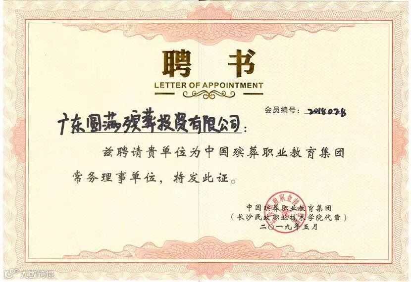 中国殡葬职业教育集团的建立将是殡葬行业合作共赢的大事,圆满服务衷心希望今后能多多参与集团建设工作,在职教集团的大平台上,团结合作、凝心聚力推动校企高度融合,以多种形式展开校企间、企业间的合作,加强产业与专业、生产与教学紧密对接,助力殡葬事业更快更高速地发展。