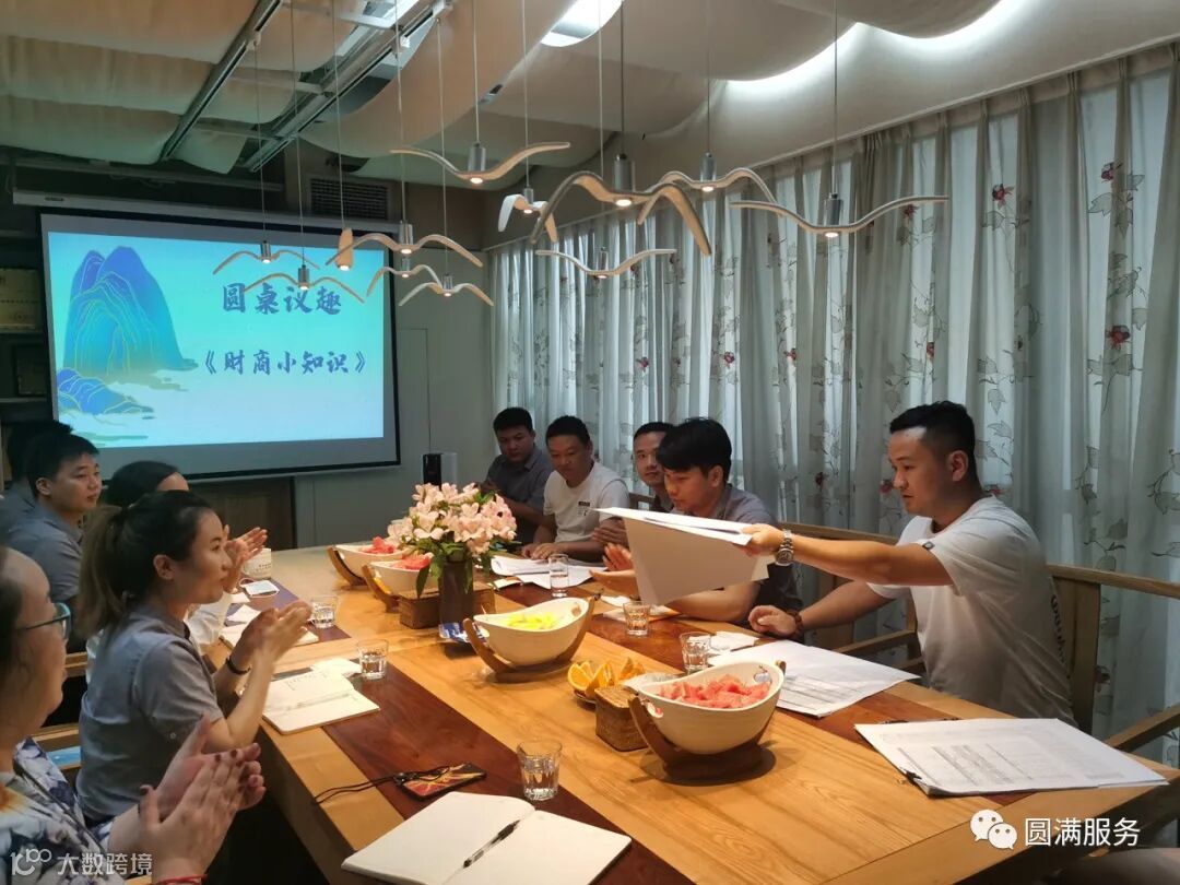 导语:圆桌议趣第2期分享会之“财商小知识”,于5月20日周三在圆满总部进行,活动当天,广东圆满CEO许国栋先生、助理总裁白鹤先生以及15名项目经理、业务骨干共同参与。