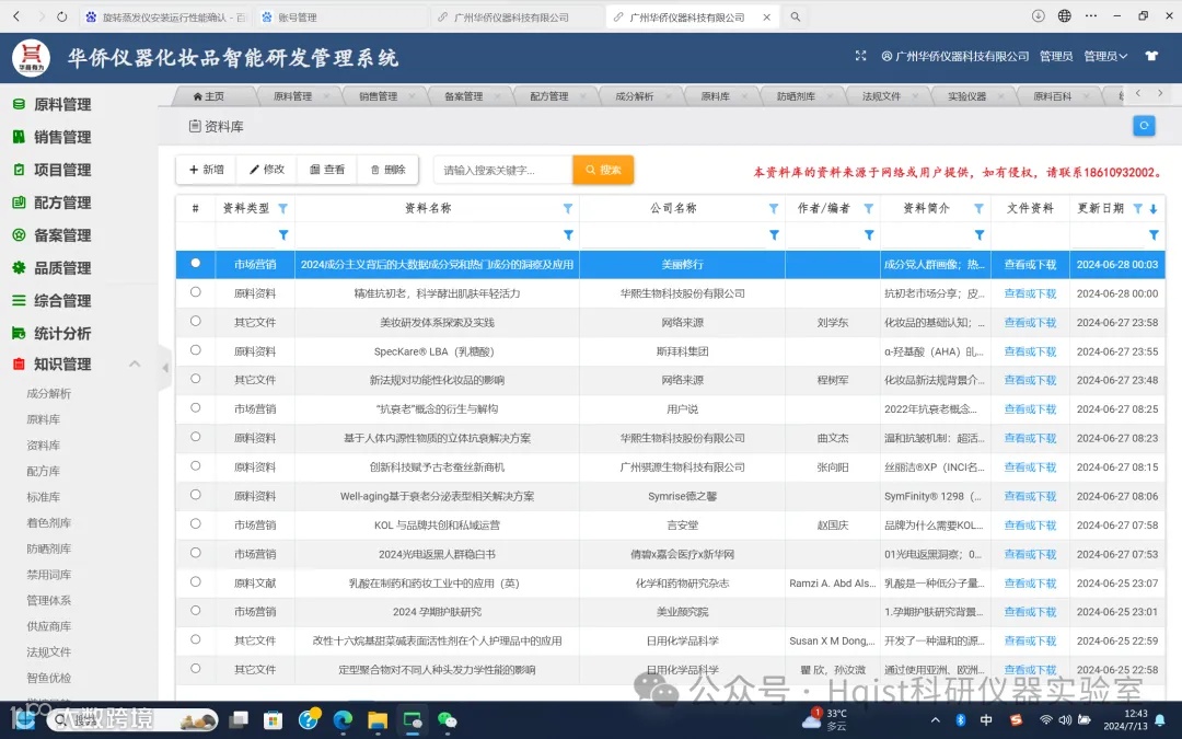 如果想试用化妆品研发智能管理系统,可以关注华侨仪器公众号,后台留言,或者联系华侨仪器的任何业务人员索取账号密码!