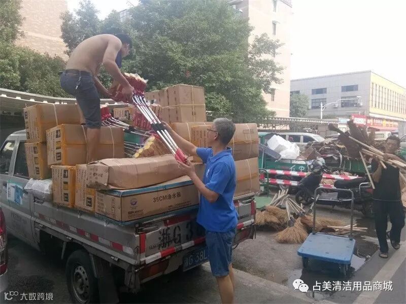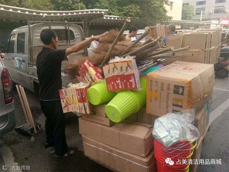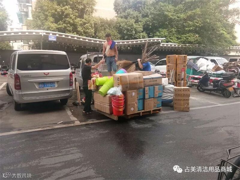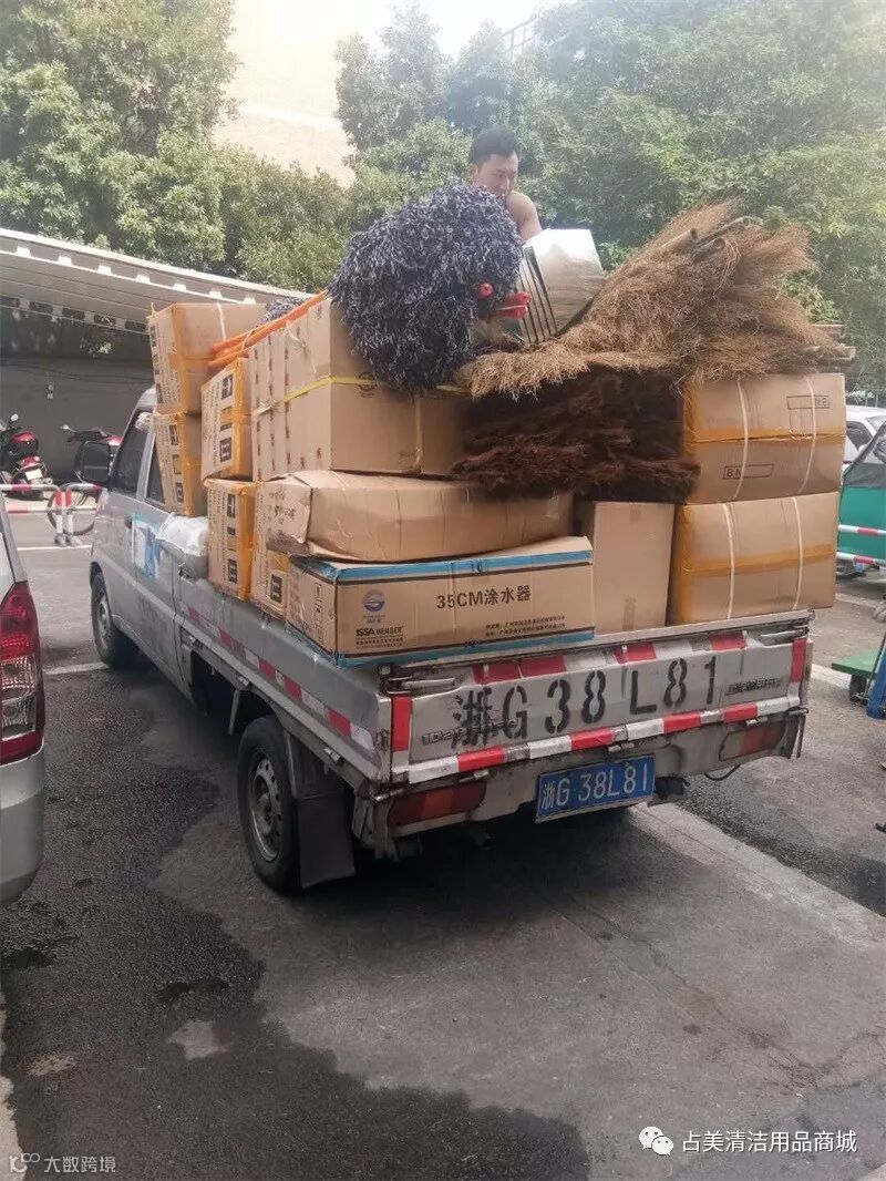 满满的一批清洁用品顺利装上车,准备给客户安全的送到目的地。