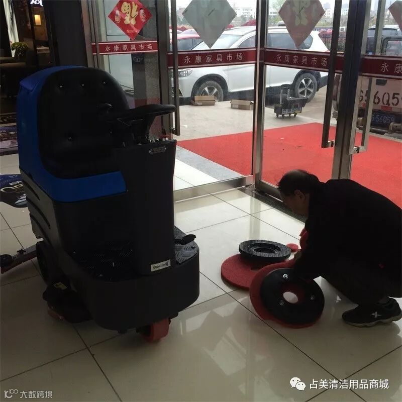 永康家具市场的员工在师傅的耐心教导下,熟练的使用容恩R-QQ洗地车。说明现在洗地车越来越受大家的欢迎,超市里、商城里等等随处可见洗地车的身影。