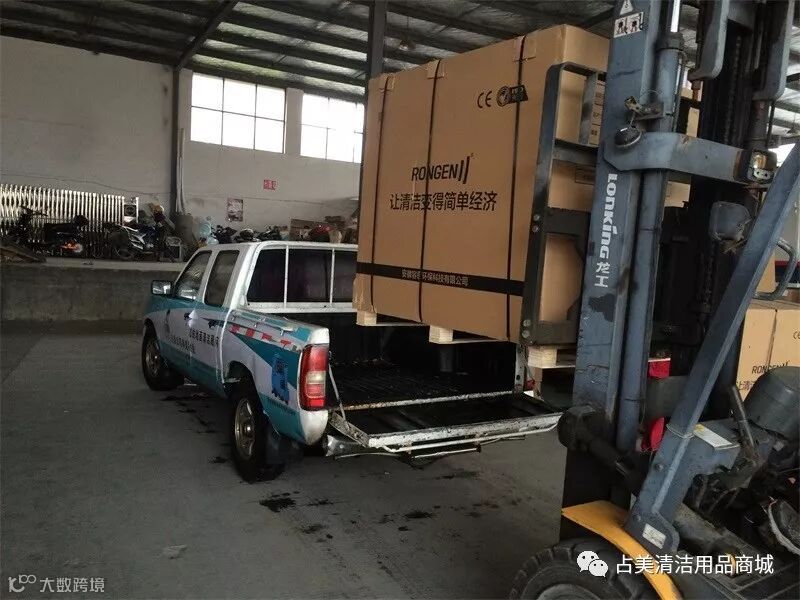 容恩R-QQ洗地车顺利装上车,准备给永康的客户安全的送达目的地。