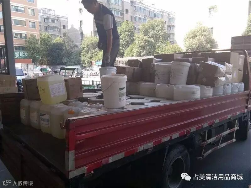 今天早上,我们占美公司农贸店迎来了一批高端清洁剂,这些清洁剂的分量可不小啊。