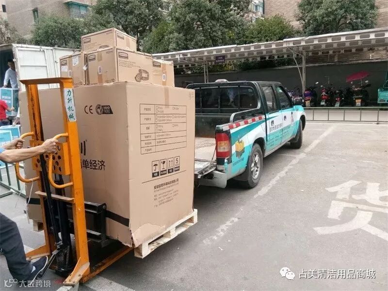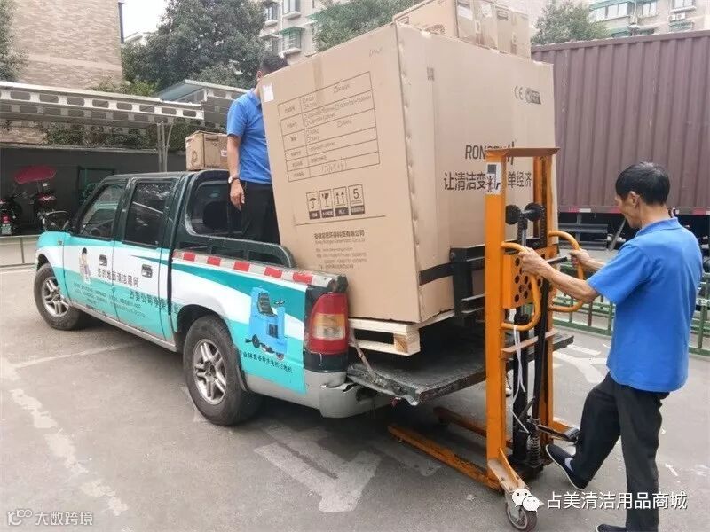 我们占美公司的同事帮忙把容恩R-QQR洗扫一体机装上车。