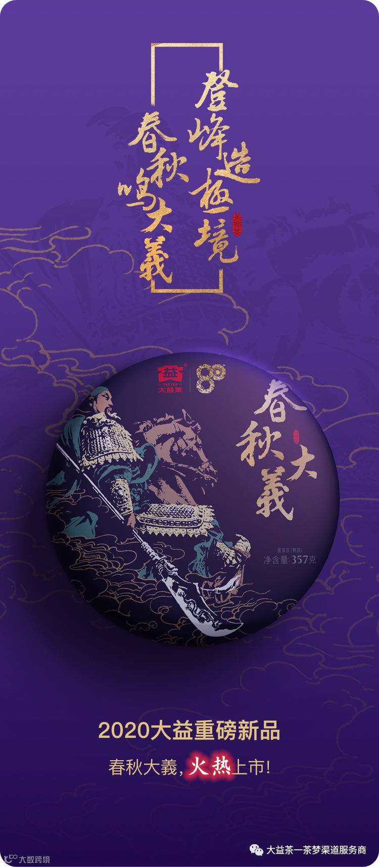 2020 年 5 月 27 日 19:30—22:00时,大益之夜——“521喝大益”淘宝直播暨重磅新品发布,2001-春秋大義熟饼惊艳亮相,这是自今年5月21日首个国际饮茶日开始,作为“益友狂欢周”系列活动的压轴之作,掀起了益友们的又一次狂欢热潮!