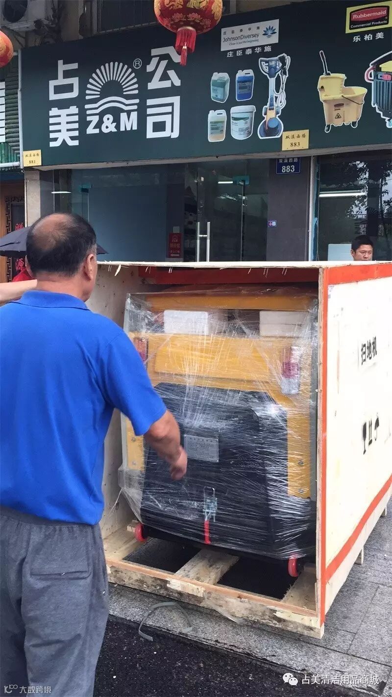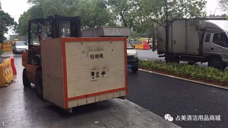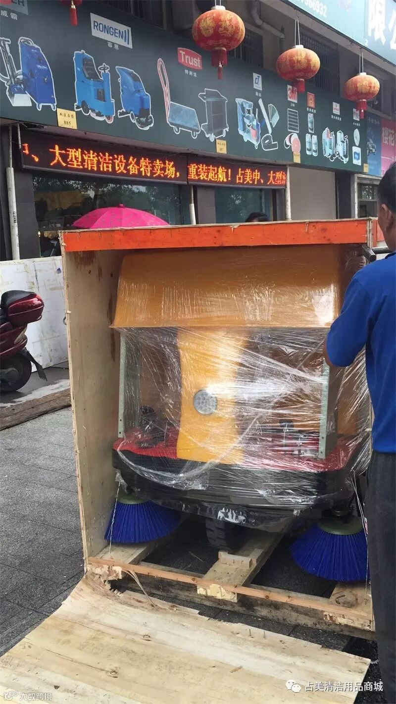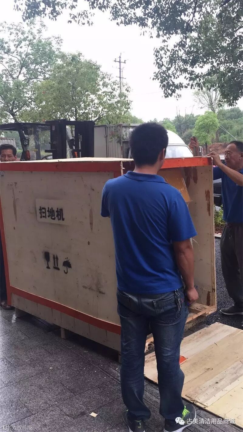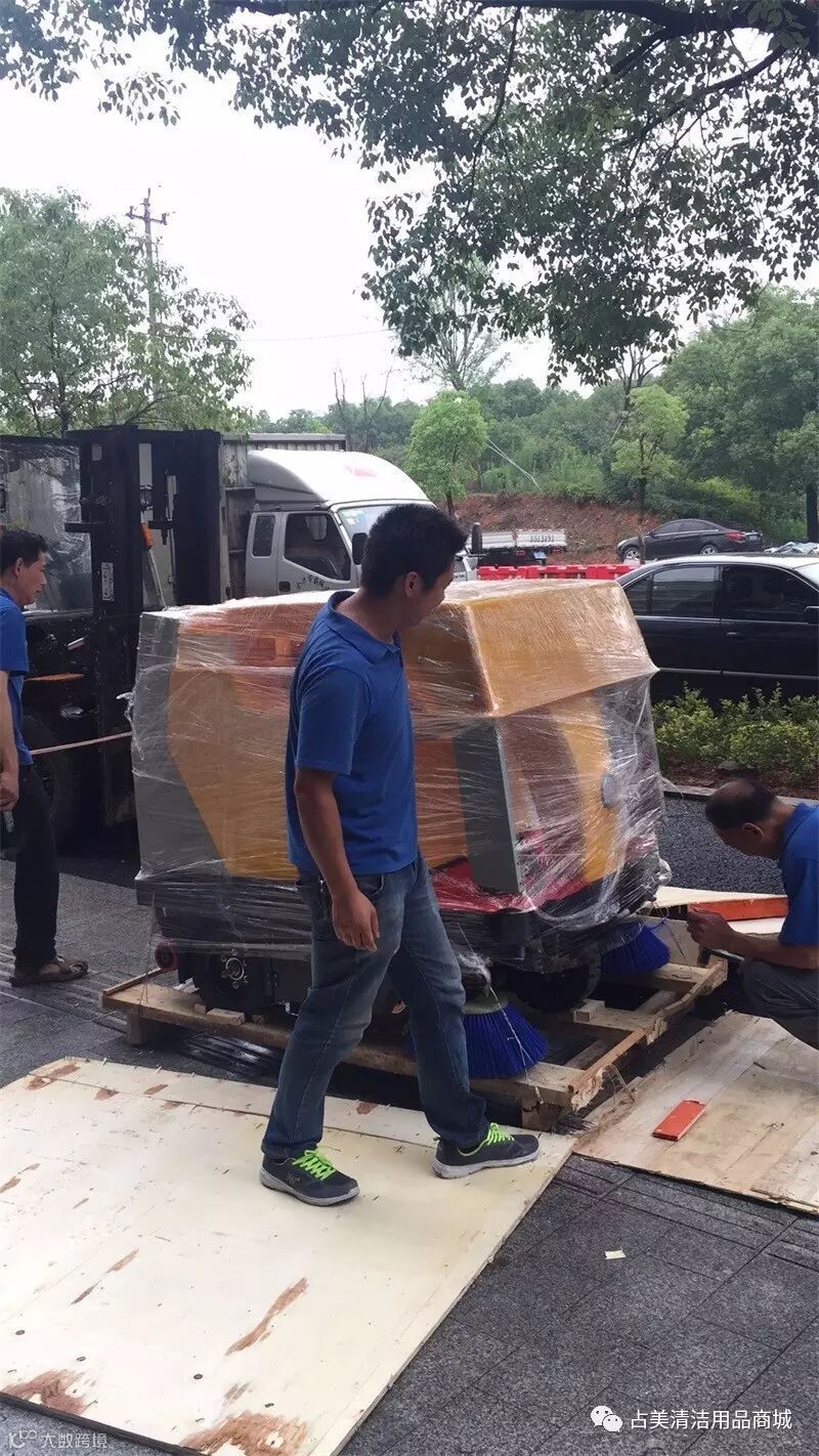 CL—MJN—1360B驾驶式扫地机刚到金华物流中心,我们占美公司的同事就迫不及待把它拉回占美老店,能第一时间展现在顾客的眼前。