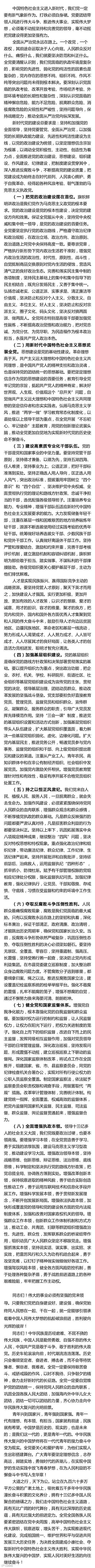 同志们!中国特色社会主义进入新时代,在中华人民共和国发展史上、中华民族发展史上具有重大意义,在世界社会主义发展史上、人类社会发展史上也具有重大意义。全党要坚定信心、奋发有为,让中国特色社会主义展现出更加强大的生命力!