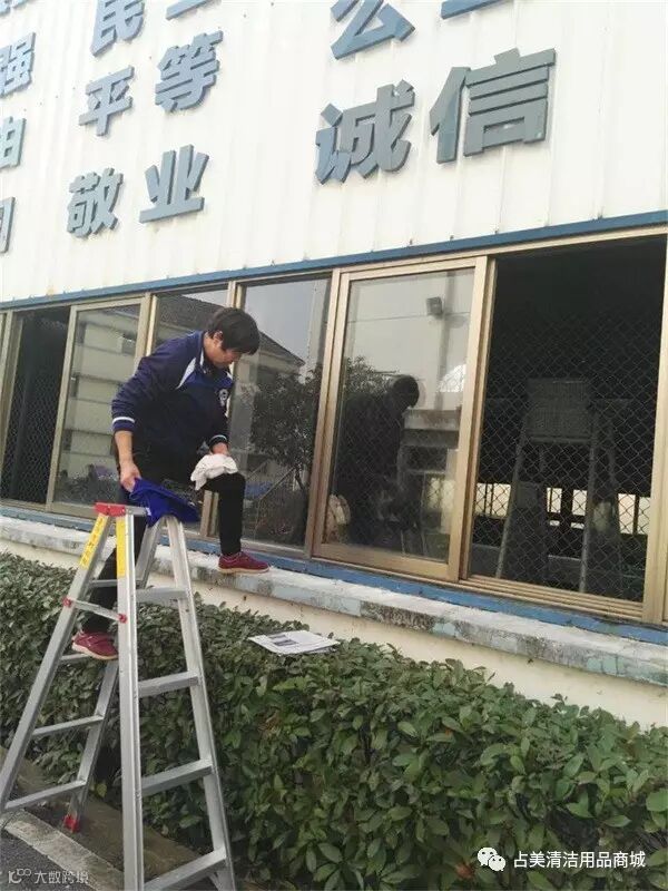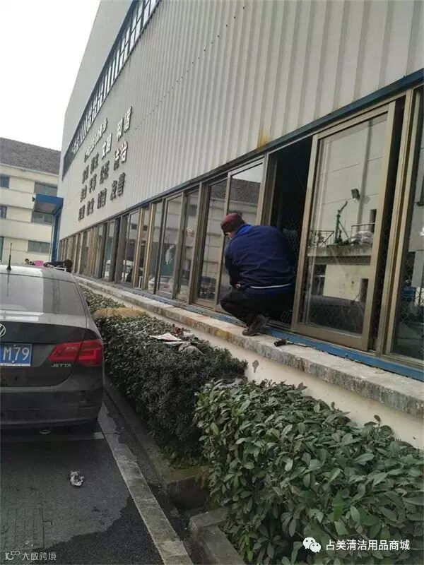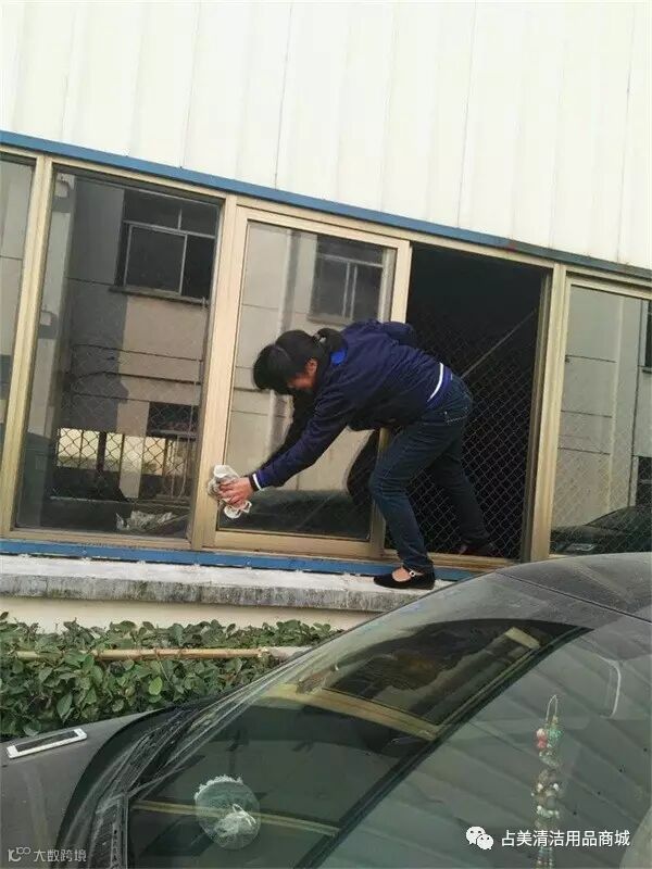 上墙擦玻璃,我们的员工经过专业训练,请不要模仿哦~