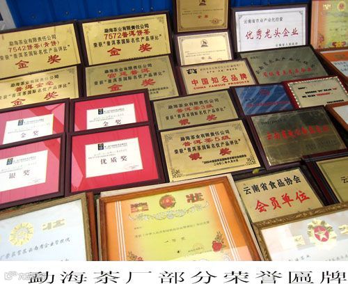 ●1993年,勐海茶厂重新调整、规范了各茶号普洱茶的拼配比例。1993年以后,政府组织的茶叶评奖渐渐被各种协会、活动组委会等所组织的评奖所代替,勐海茶厂获得过众多的金、银、铜奖,不录。