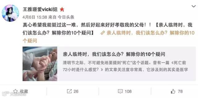 今年3月7日,她在微博写下“生命进入倒计时”让无数人泪崩