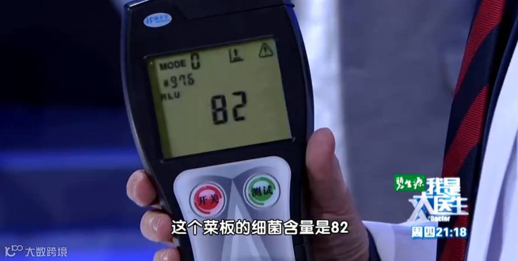 北京卫视的一档健康节目做了一次实验:采用新菜板剁肉30秒,再静置1小时,让菜板上的细菌与空气充分接触,再检测细菌的含量。
