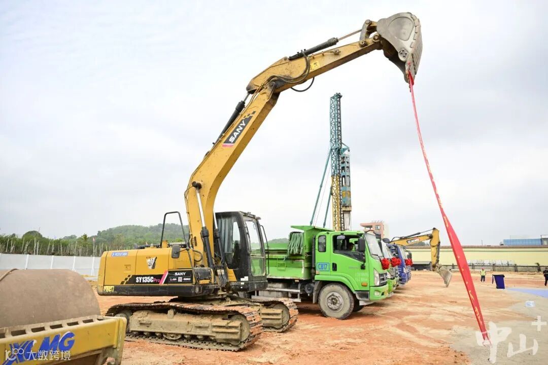 “开工!出发!”当天,在响亮的鸣笛声和打桩机有序的撞击声中,翠城2号项目正式动工。翠城2号项目占地面积40.5亩,规划建筑面积约8万平方米,建筑密度42.95%,容积率3.01,绿地率10.04%。项目总投资约2.15亿元,工程包含4栋单体,其中2栋厂房、1栋生活配套楼、1栋垃圾收集点。项目区位优势显著,距离广澳高速翠亨站出口仅3公里,距广珠城际南朗站1公里,半小时内可通过高铁、高速直达广州、深圳、珠海,交通便捷。项目西依云梯山,东眺伶仃洋,周边拥有山、田、涌、海,环境优美,生态良好。目前,项目周边已集聚华利、侨光、国泰等产业园,产业基础良好,未来产业园扩展空间广阔。