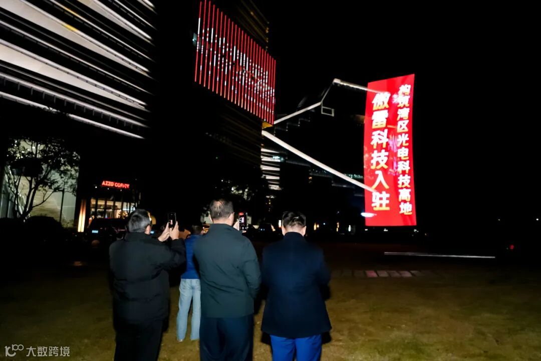 拥有“最大的LED网状飞天屏”吉尼斯世界纪录认证的深圳御光新材料有限公司,利用自主研发的技术展示翠亨集团与园区企业风采,充满极致的科技感。