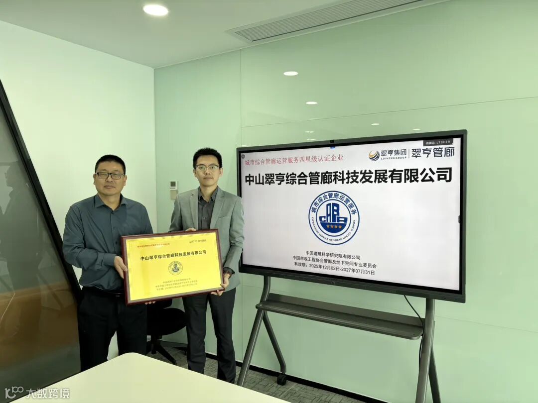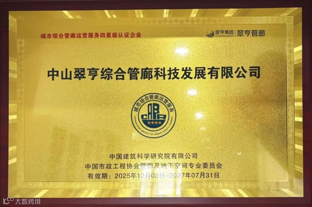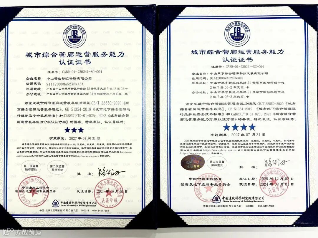 这一认证不仅标志着企业在管廊运维领域跻身行业领先地位,更意味着翠亨集团在城市综合管廊运营维护服务这一国家新基建重要赛道中,树立起全新的品质标杆。