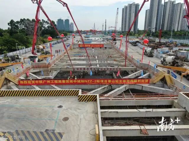 南中城际香山站主体结构全面封顶。
