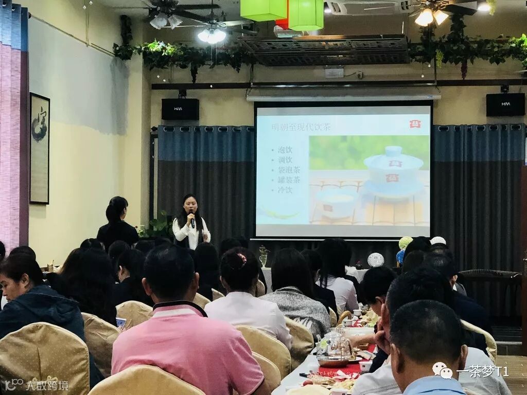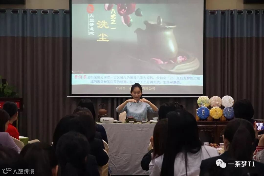 会上特邀大益集团资深培训讲师戴薇薇老师给在座来宾介绍茶叶的历史、分享大益普洱茶以及讲授如何冲泡茶品等等,带领大家学习茶文化知识。