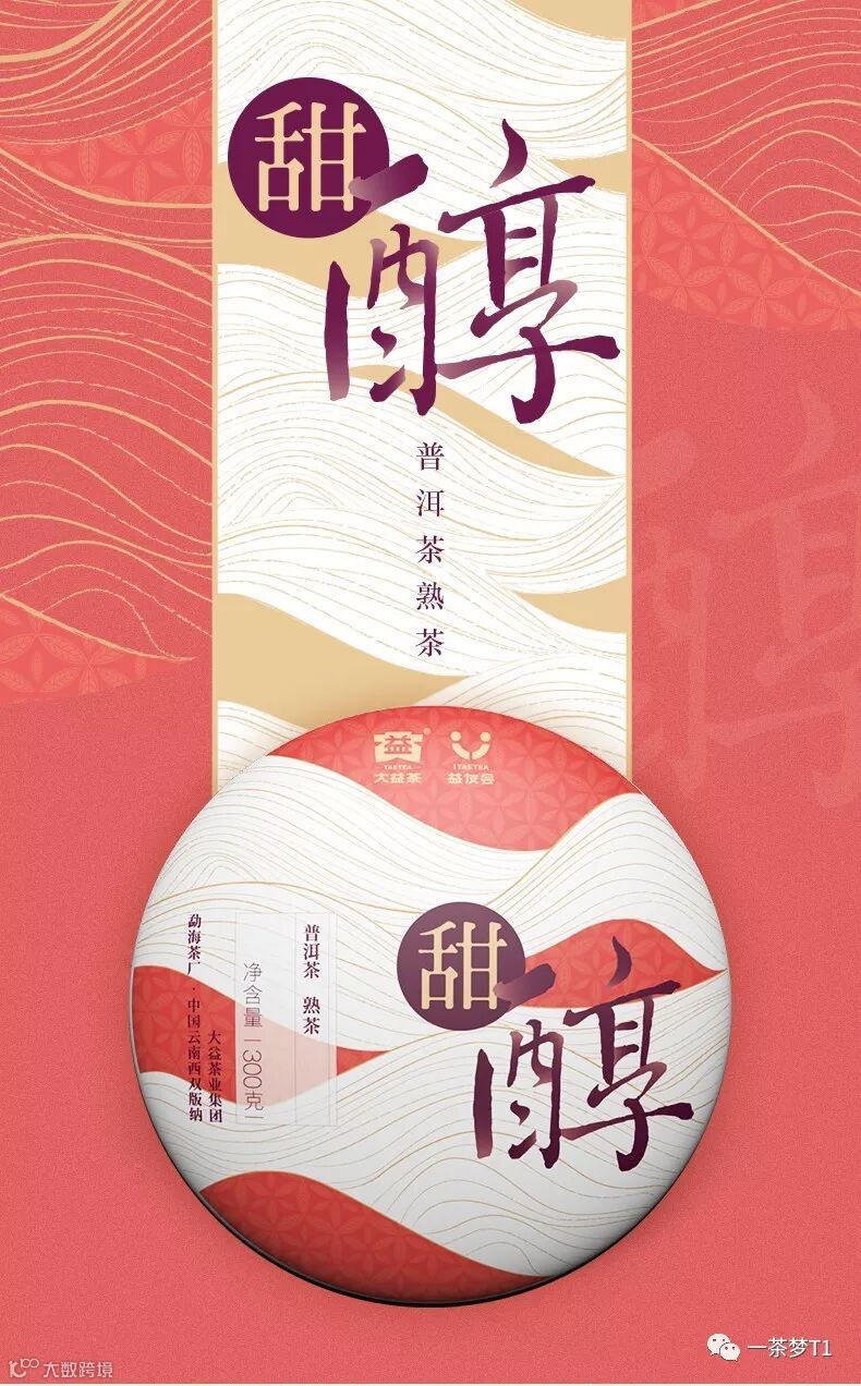 新品大益甜醇熟茶,精选云南大叶种晒青茶为料,采用国家非物质文化遗产“大益茶制作技艺”加工而成。四年陈料,贮藏时光密码。一朝相逢,且饮年华流韵