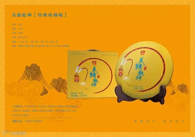 猴年生肖茶系列代表性产品,大树茶选料,口感风味独特,继承传统形态,满足生肖茶收藏爱好者的收藏需求,经典一脉相承。