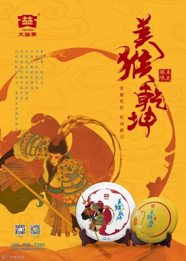 贰零壹陆为中国农历猴年,时遇中国破局之年,革新之年,大益【美猴乾坤】红火现世,以【逆转纪元】之罡正大气,提前恭贺广大茶人茶友新春快乐,再开新元!